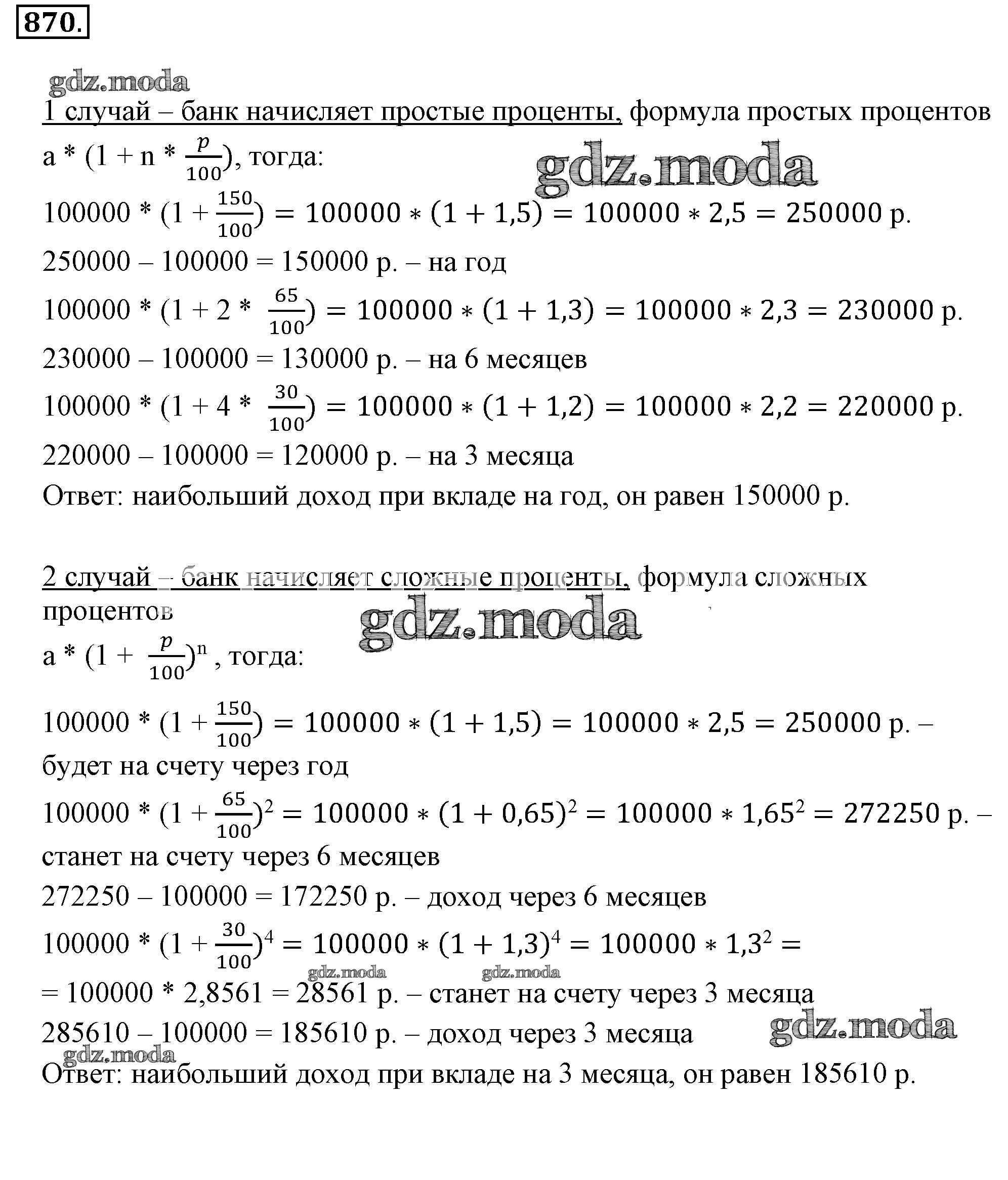 ОТВЕТ на задание № 870 Учебник по Математике 6 класс Никольский МГУ - школе