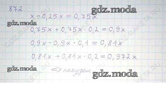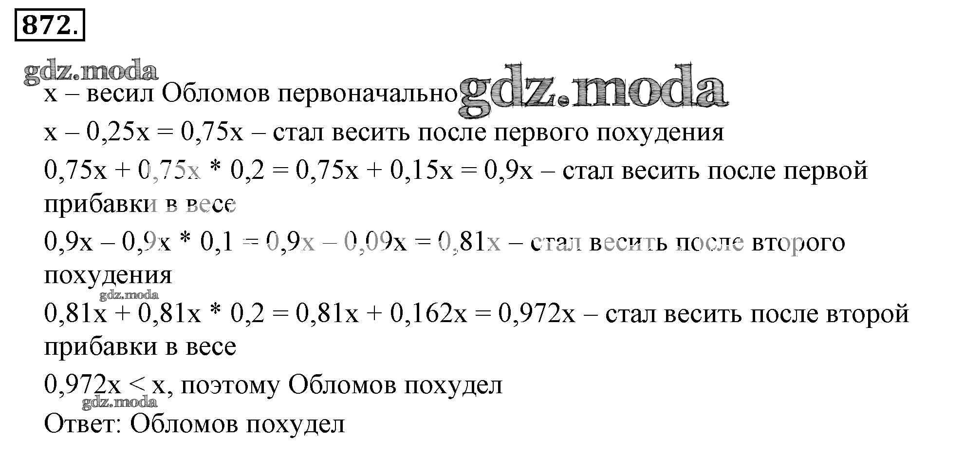 ОТВЕТ на задание № 872 Учебник по Математике 6 класс Никольский МГУ - школе