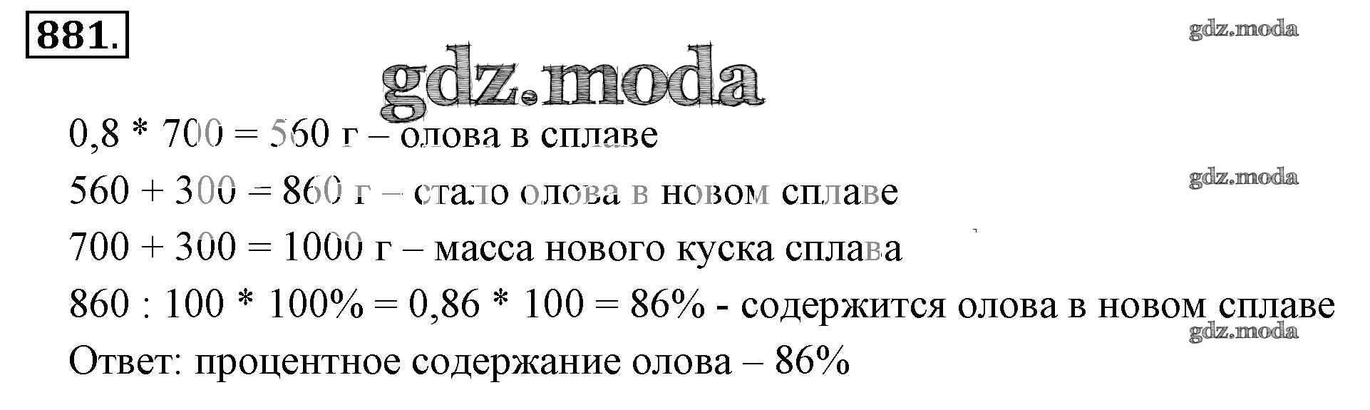 ОТВЕТ на задание № 881 Учебник по Математике 6 класс Никольский МГУ - школе