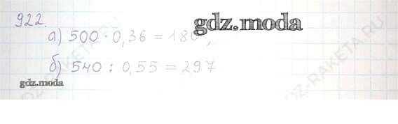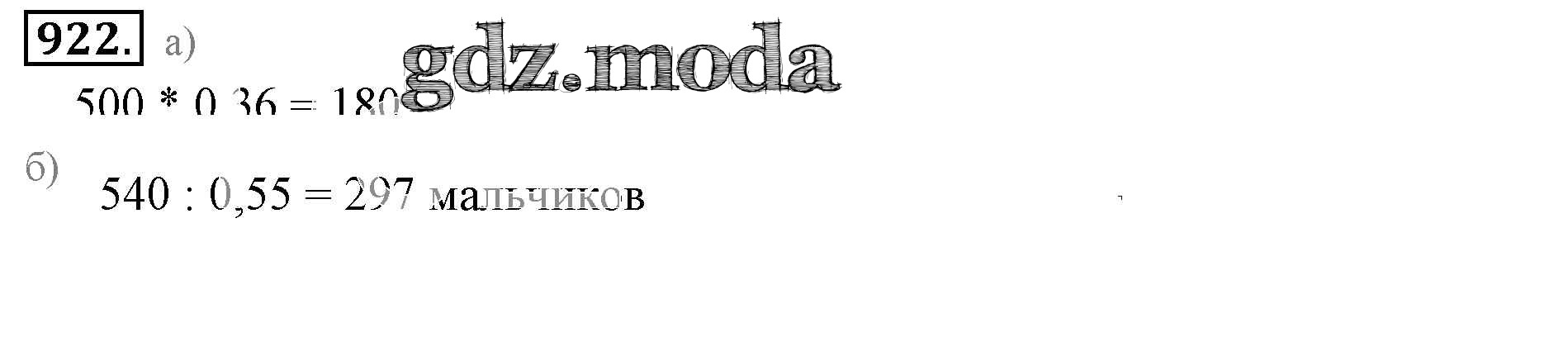 ОТВЕТ на задание № 922 Учебник по Математике 6 класс Никольский МГУ - школе