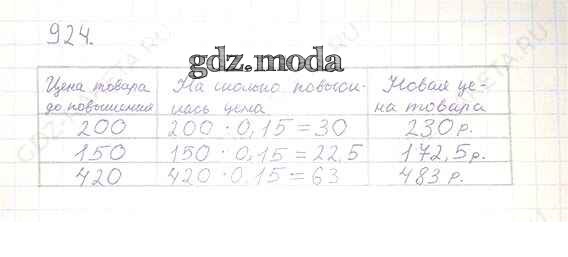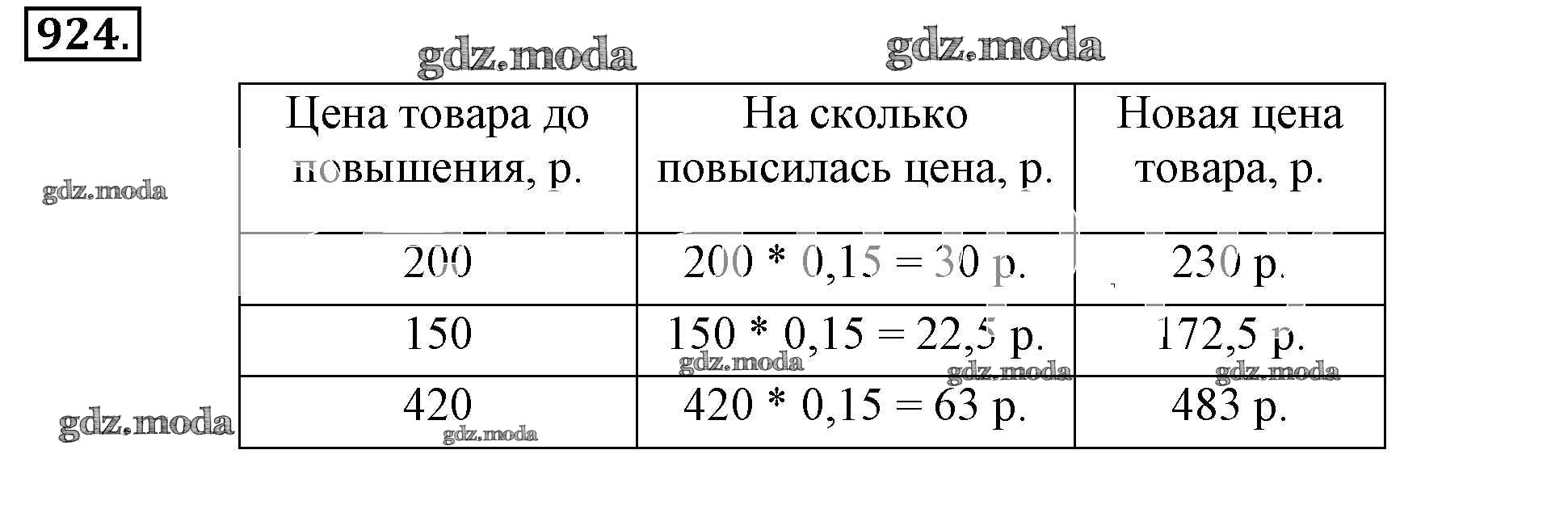 ОТВЕТ на задание № 924 Учебник по Математике 6 класс Никольский МГУ - школе