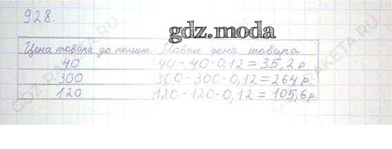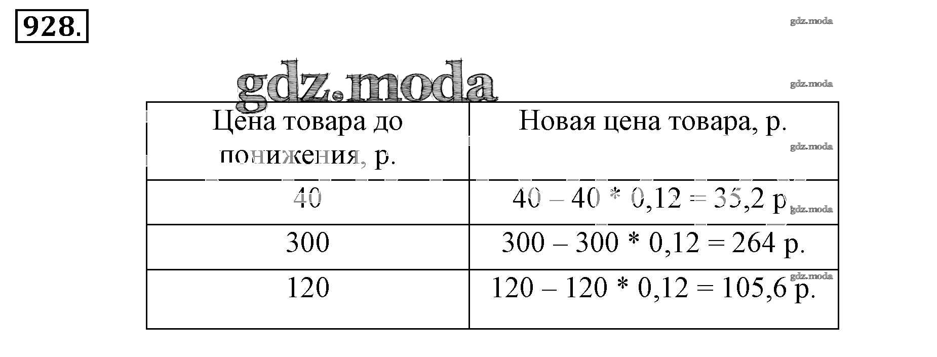 ОТВЕТ на задание № 928 Учебник по Математике 6 класс Никольский МГУ - школе