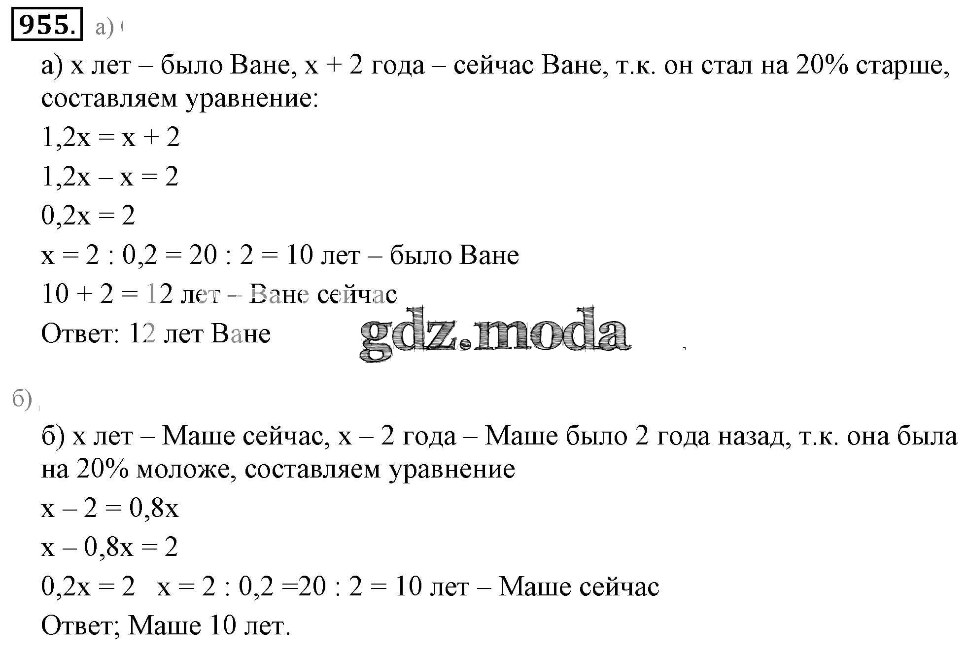 ОТВЕТ на задание № 955 Учебник по Математике 6 класс Никольский МГУ - школе