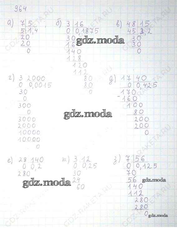 ОТВЕТ на задание № 964 Учебник по Математике 6 класс Никольский МГУ - школе