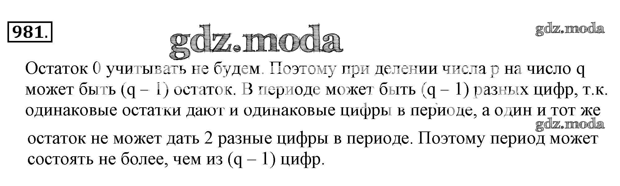 ОТВЕТ на задание № 981 Учебник по Математике 6 класс Никольский МГУ - школе