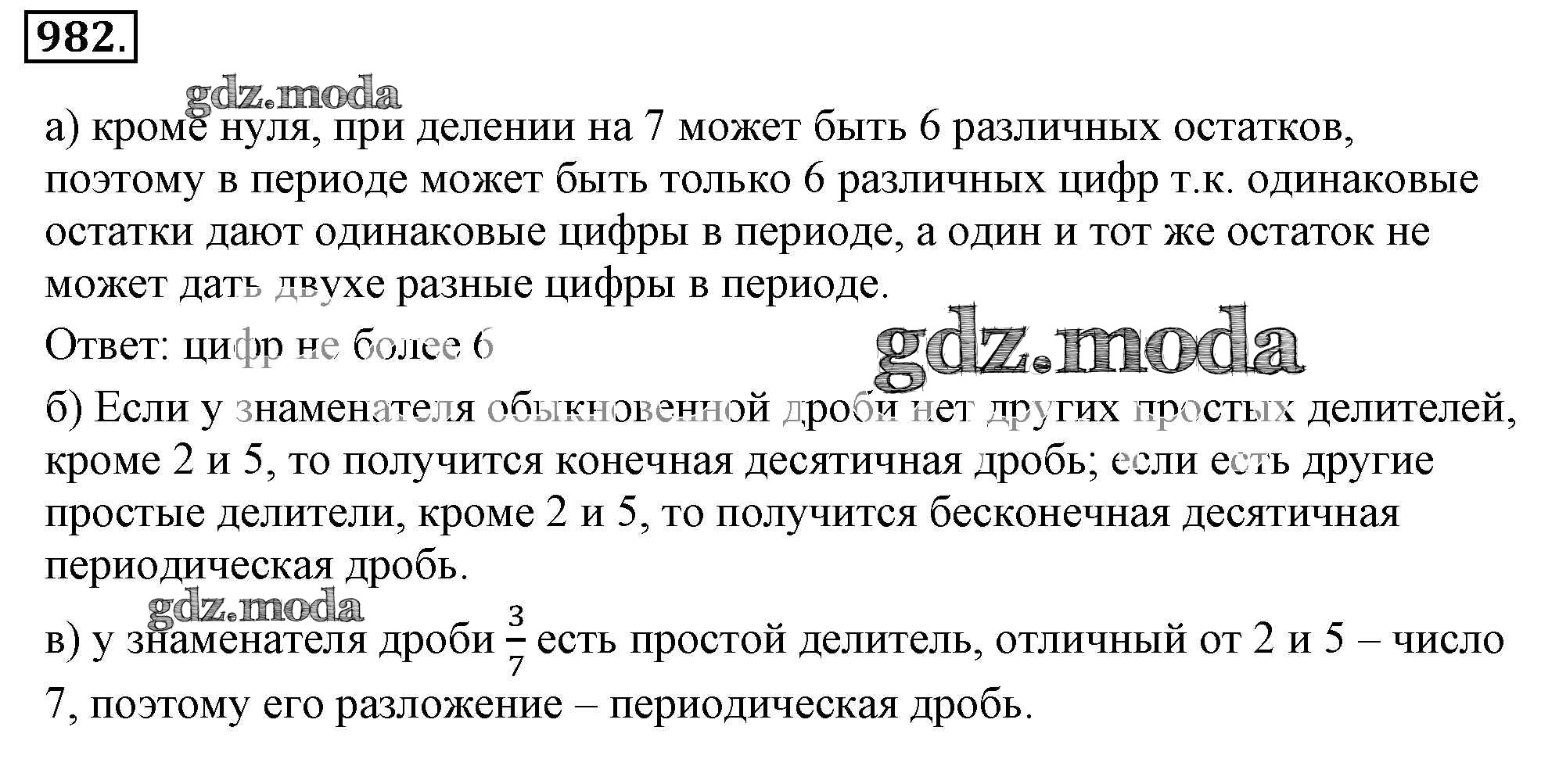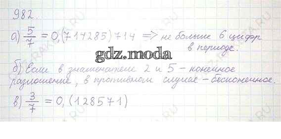 ОТВЕТ на задание № 982 Учебник по Математике 6 класс Никольский МГУ - школе