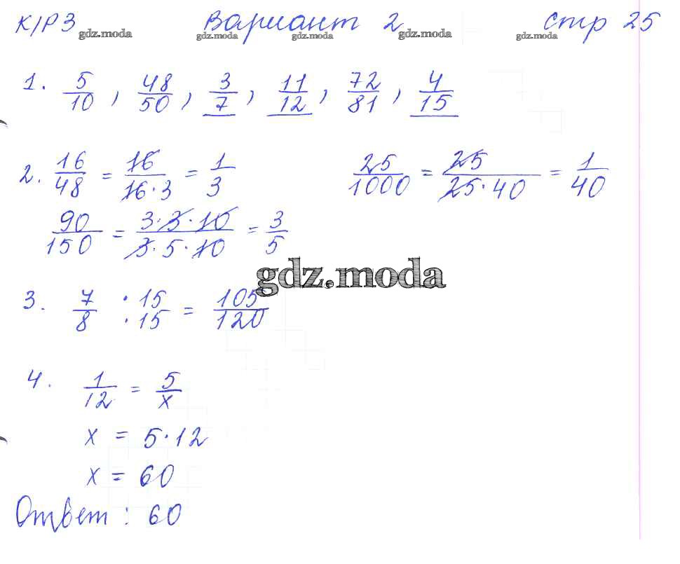 ГДЗ решение к заданию № 25 Математика 6 класс рабочая тетрадь для контрольных работ Рудницкая В.Н. (к уч. Виленкина Н.Я.) Экзамен 2013 Часть 1, Часть 2 ФГОС бесплатно на гдз.мода!
