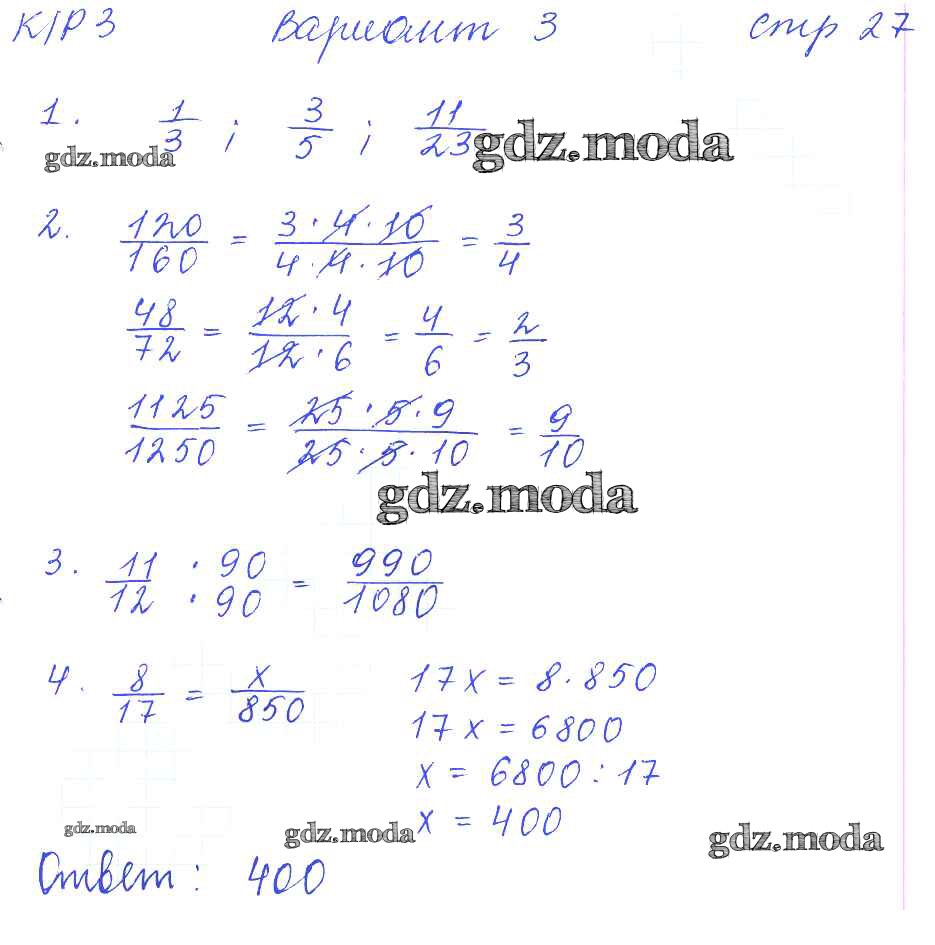 ГДЗ решение к заданию № 27 Математика 6 класс рабочая тетрадь для контрольных работ Рудницкая В.Н. (к уч. Виленкина Н.Я.) Экзамен 2013 Часть 1, Часть 2 ФГОС бесплатно на гдз.мода!