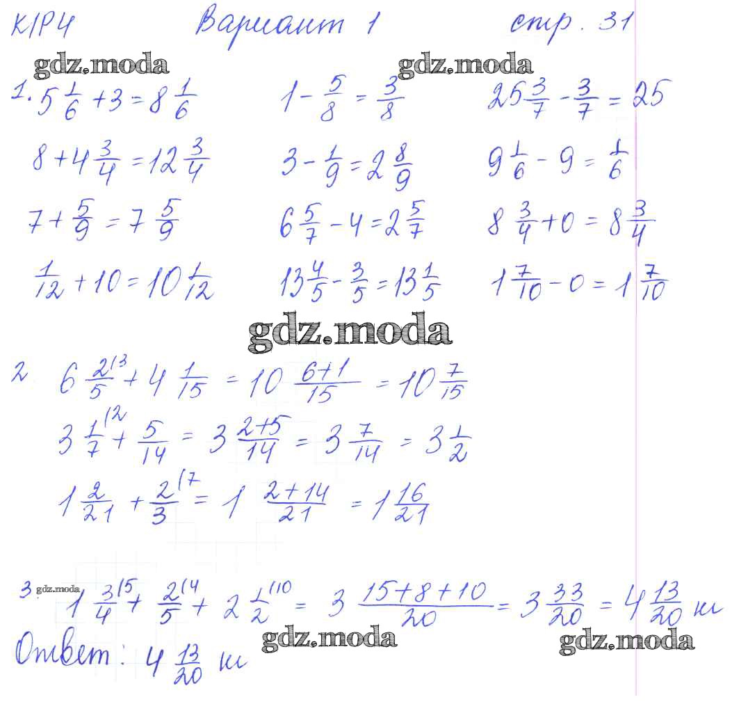 ГДЗ решение к заданию № 31 Математика 6 класс рабочая тетрадь для контрольных работ Рудницкая В.Н. (к уч. Виленкина Н.Я.) Экзамен 2013 Часть 1, Часть 2 ФГОС бесплатно на гдз.мода!