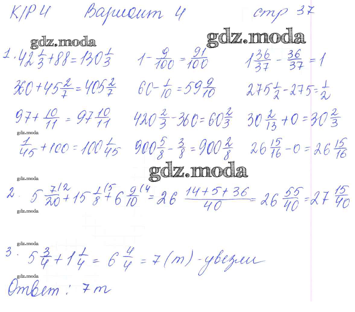 ГДЗ решение к заданию № 37 Математика 6 класс рабочая тетрадь для контрольных работ Рудницкая В.Н. (к уч. Виленкина Н.Я.) Экзамен 2013 Часть 1, Часть 2 ФГОС бесплатно на гдз.мода!