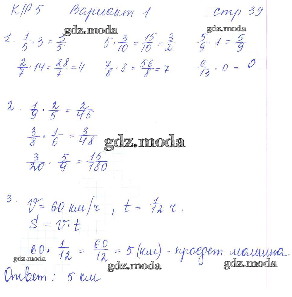 ГДЗ решение к заданию № 39 Математика 6 класс рабочая тетрадь для контрольных работ Рудницкая В.Н. (к уч. Виленкина Н.Я.) Экзамен 2013 Часть 1, Часть 2 ФГОС бесплатно на гдз.мода!