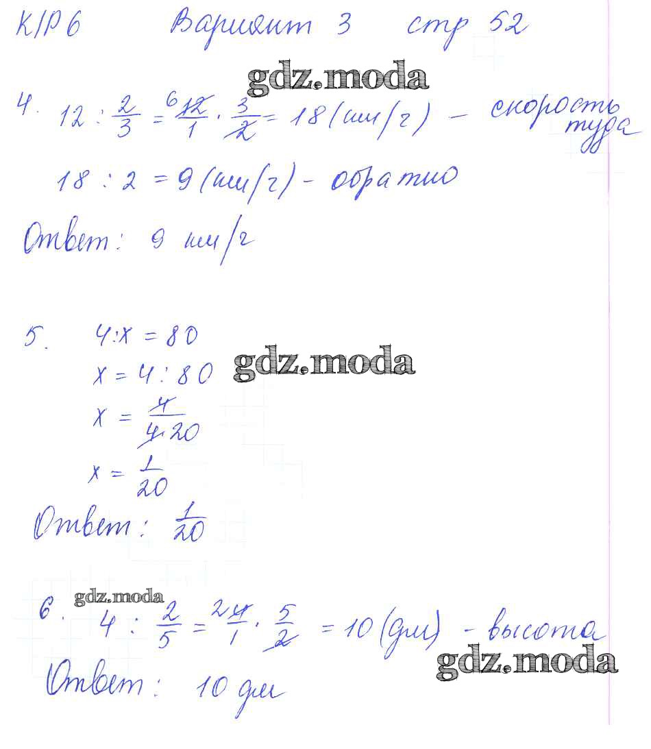 ГДЗ решение к заданию № 52 Математика 6 класс рабочая тетрадь для контрольных работ Рудницкая В.Н. (к уч. Виленкина Н.Я.) Экзамен 2013 Часть 1, Часть 2 ФГОС бесплатно на гдз.мода!