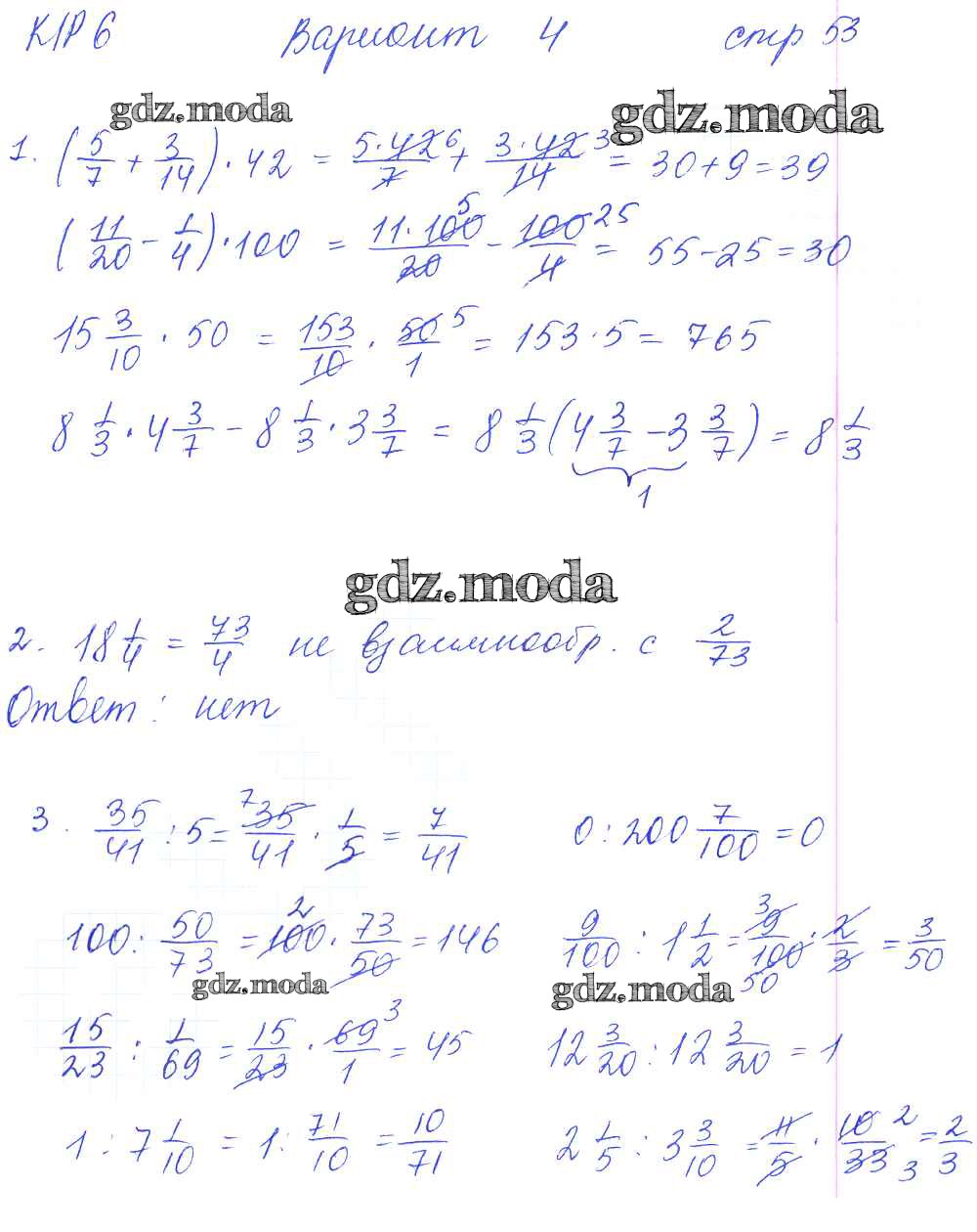 ГДЗ решение к заданию № 53 Математика 6 класс рабочая тетрадь для контрольных работ Рудницкая В.Н. (к уч. Виленкина Н.Я.) Экзамен 2013 Часть 1, Часть 2 ФГОС бесплатно на гдз.мода!