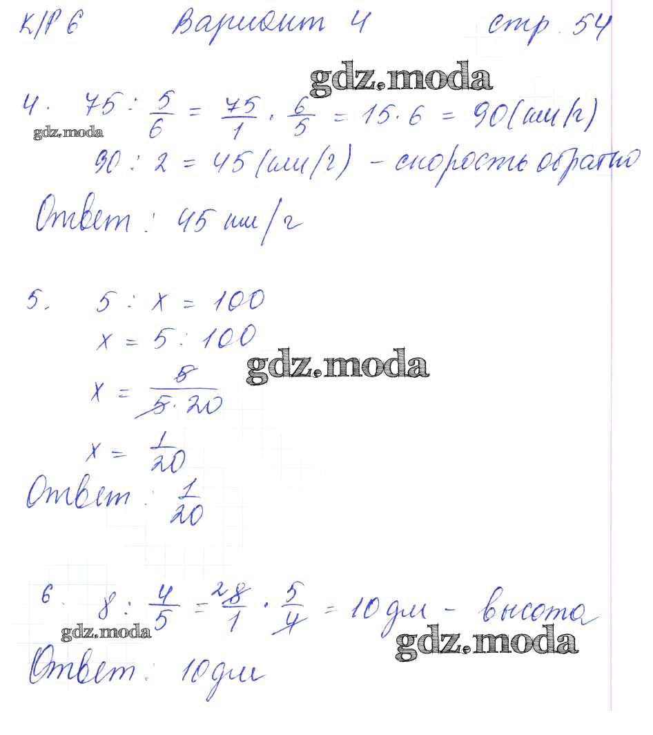 ГДЗ решение к заданию № 54 Математика 6 класс рабочая тетрадь для контрольных работ Рудницкая В.Н. (к уч. Виленкина Н.Я.) Экзамен 2013 Часть 1, Часть 2 ФГОС бесплатно на гдз.мода!
