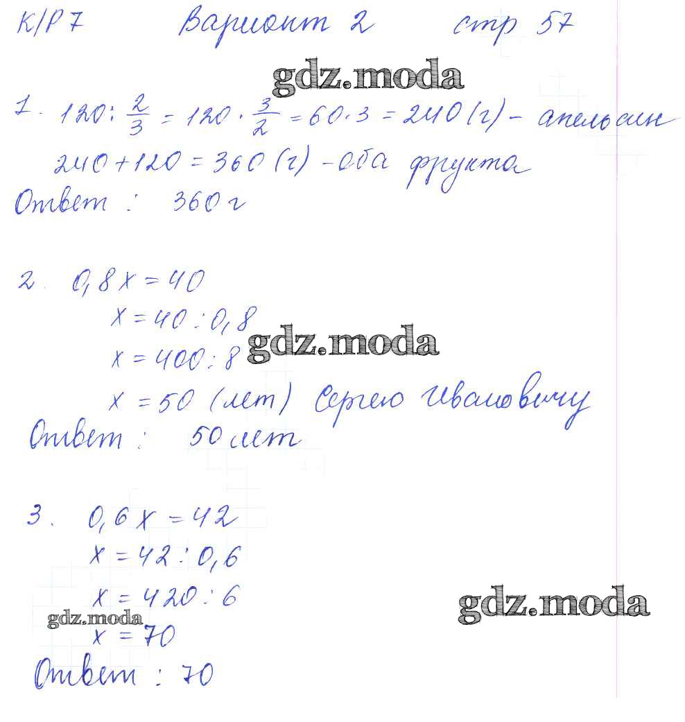 ГДЗ решение к заданию № 57 Математика 6 класс рабочая тетрадь для контрольных работ Рудницкая В.Н. (к уч. Виленкина Н.Я.) Экзамен 2013 Часть 1, Часть 2 ФГОС бесплатно на гдз.мода!