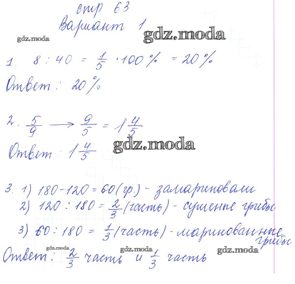 ГДЗ решение к заданию № 63 Математика 6 класс рабочая тетрадь для контрольных работ Рудницкая В.Н. (к уч. Виленкина Н.Я.) Экзамен 2013 Часть 1, Часть 2 ФГОС бесплатно на гдз.мода!