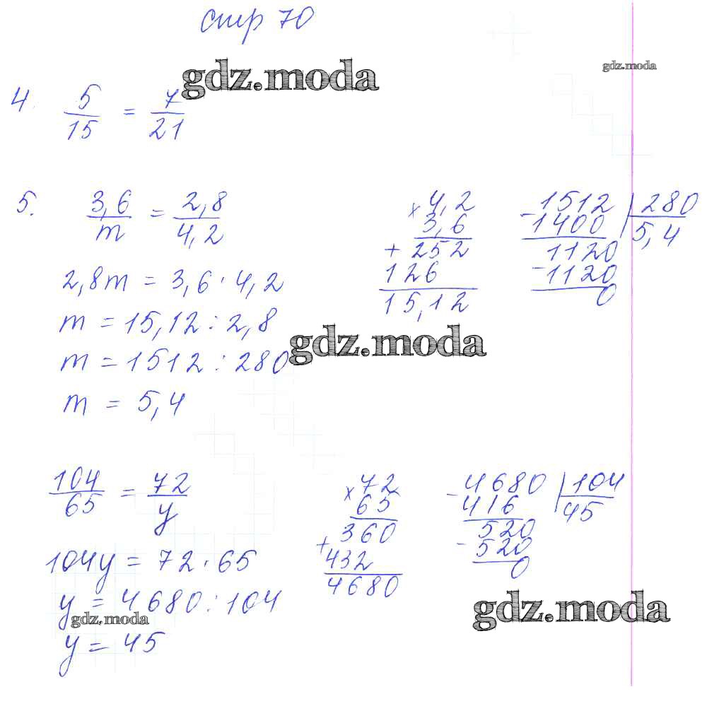 ГДЗ решение к заданию № 70 Математика 6 класс рабочая тетрадь для контрольных работ Рудницкая В.Н. (к уч. Виленкина Н.Я.) Экзамен 2013 Часть 1, Часть 2 ФГОС бесплатно на гдз.мода!