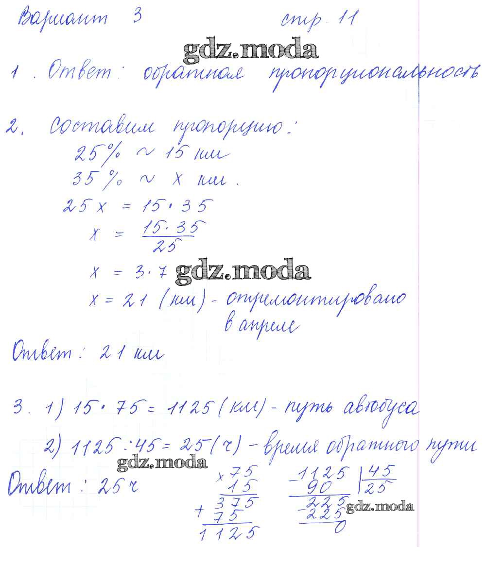 ГДЗ решение к заданию № 11 Математика 6 класс рабочая тетрадь для контрольных работ Рудницкая В.Н. (к уч. Виленкина Н.Я.) Экзамен 2013 Часть 1, Часть 2 ФГОС бесплатно на гдз.мода!