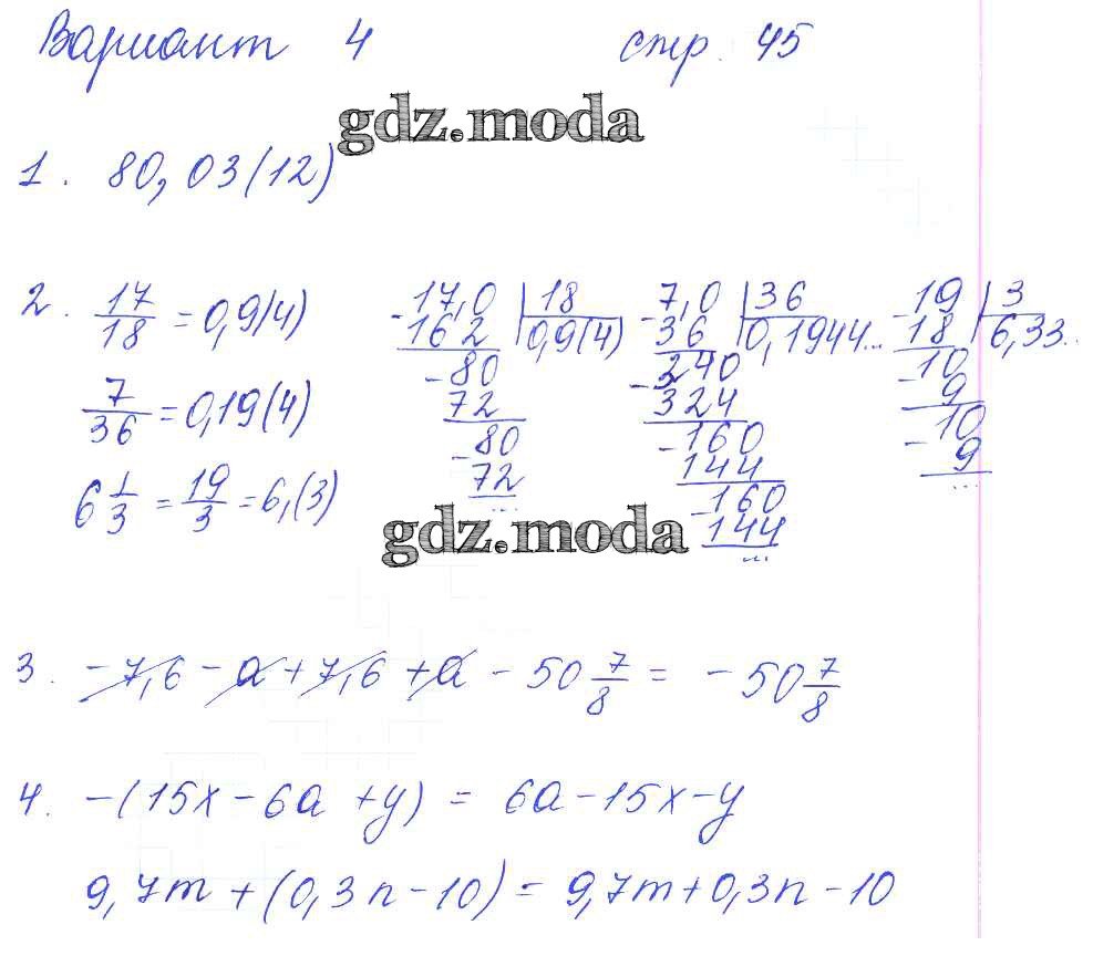 ГДЗ решение к заданию № 45 Математика 6 класс рабочая тетрадь для контрольных работ Рудницкая В.Н. (к уч. Виленкина Н.Я.) Экзамен 2013 Часть 1, Часть 2 ФГОС бесплатно на гдз.мода!