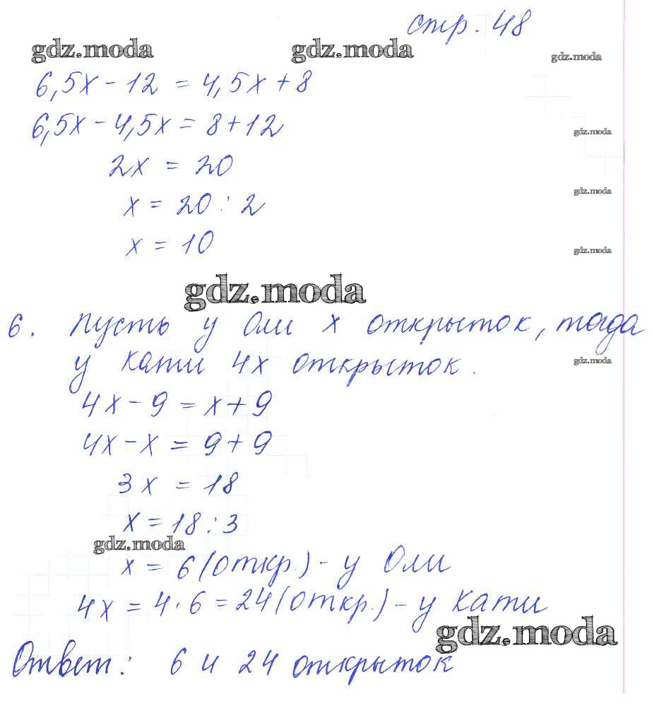 ГДЗ решение к заданию № 48 Математика 6 класс рабочая тетрадь для контрольных работ Рудницкая В.Н. (к уч. Виленкина Н.Я.) Экзамен 2013 Часть 1, Часть 2 ФГОС бесплатно на гдз.мода!