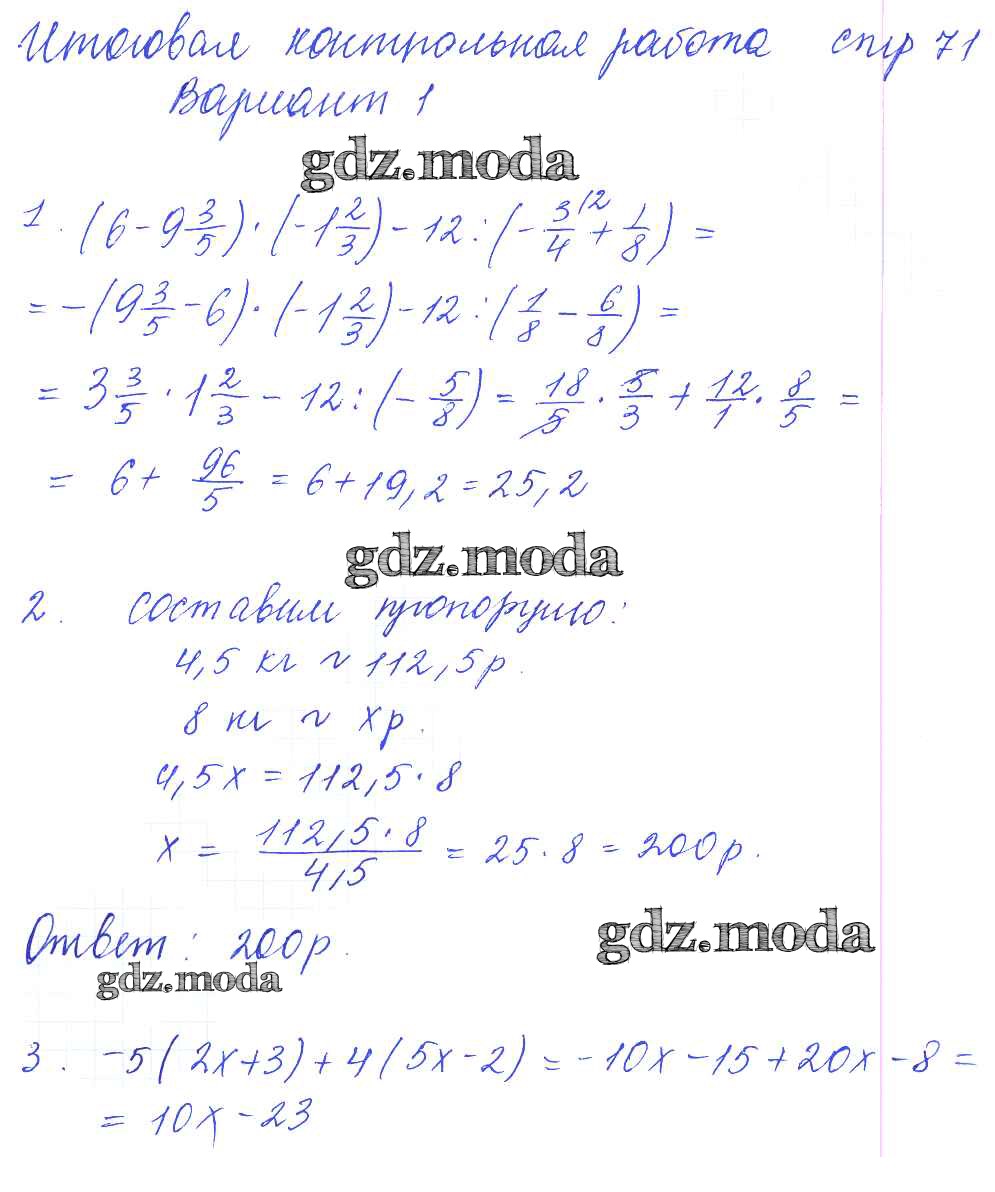 ГДЗ решение к заданию № 71 Математика 6 класс рабочая тетрадь для контрольных работ Рудницкая В.Н. (к уч. Виленкина Н.Я.) Экзамен 2013 Часть 1, Часть 2 ФГОС бесплатно на гдз.мода!