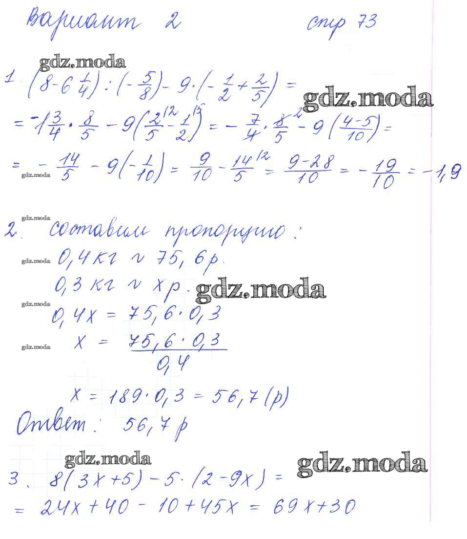 ГДЗ решение к заданию № 73 Математика 6 класс рабочая тетрадь для контрольных работ Рудницкая В.Н. (к уч. Виленкина Н.Я.) Экзамен 2013 Часть 1, Часть 2 ФГОС бесплатно на гдз.мода!