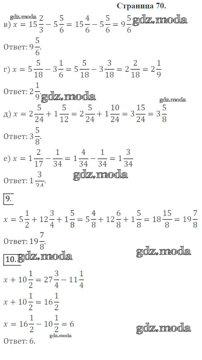 ОТВЕТ на задание № 70 Рабочая тетрадь по Математике 6 класс Ерина УМК