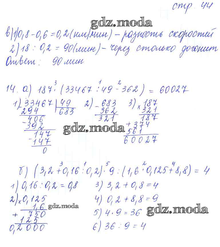 ГДЗ решение к заданию № 44 Математика 6 класс рабочая тетрадь Ерина Т.М. (к уч. Виленкина) Экзамен 2020 Часть 1, Часть 2 ФГОС бесплатно на гдз.мода!