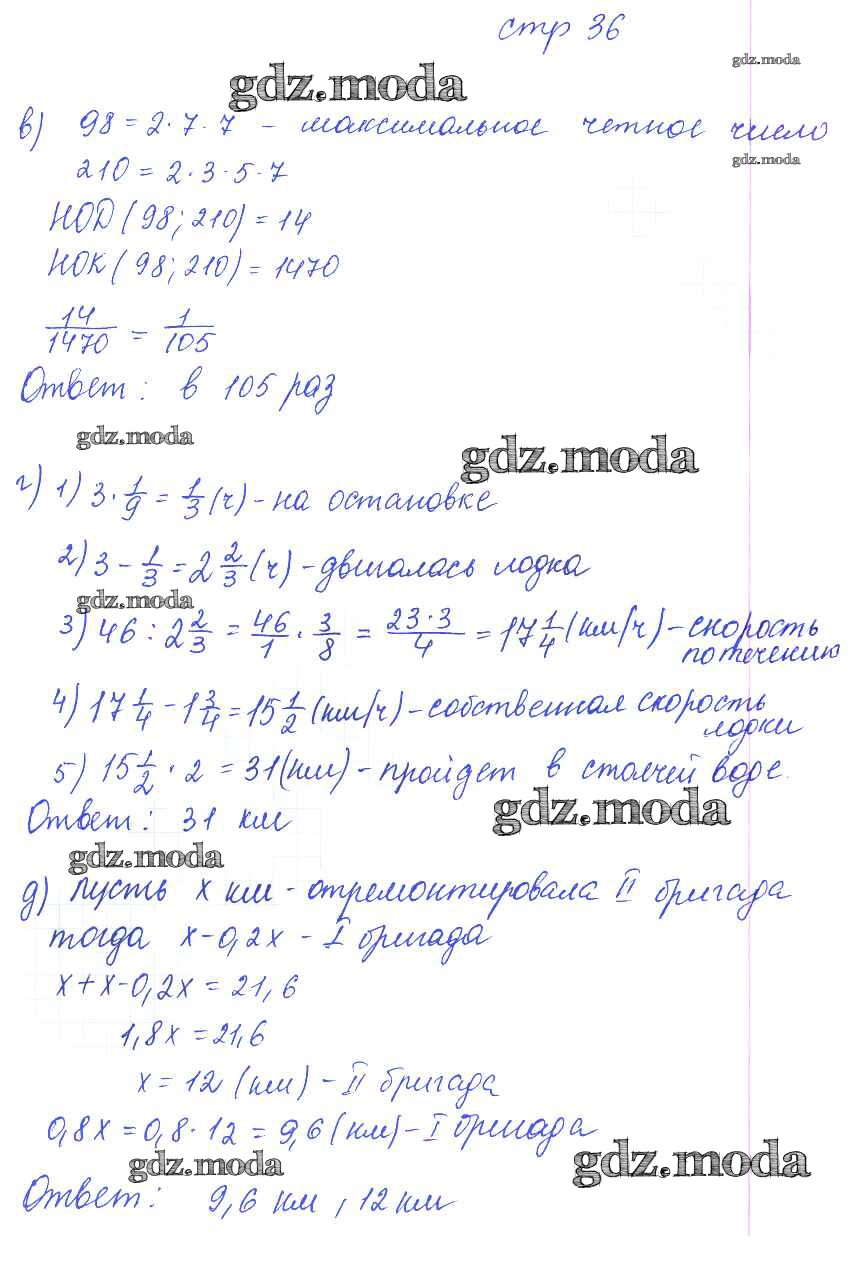 ГДЗ решение к заданию № 36 Математика 6 класс рабочая тетрадь Ерина Т.М. (к уч. Виленкина) Экзамен 2020 Часть 1, Часть 2 ФГОС бесплатно на гдз.мода!