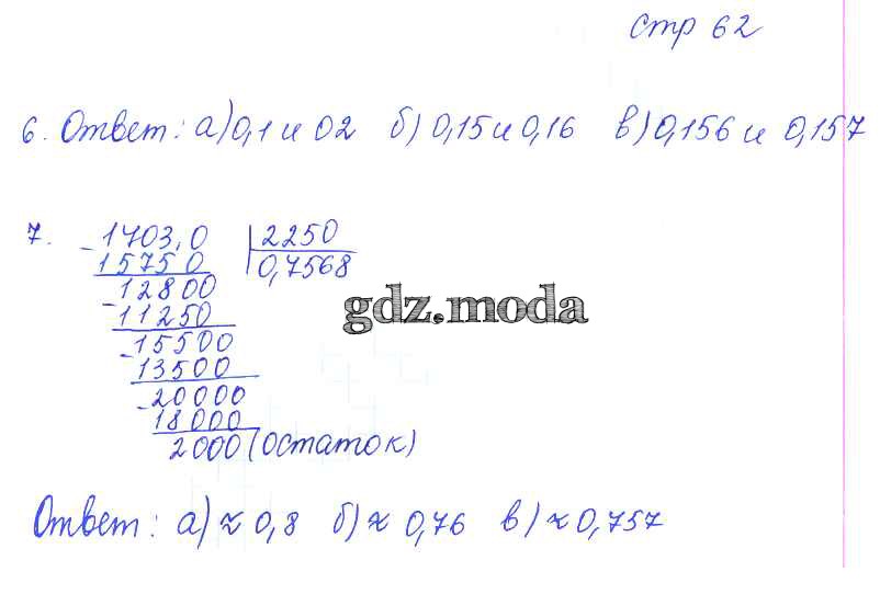 ГДЗ решение к заданию № 62 Математика 6 класс рабочая тетрадь Ерина Т.М. (к уч. Виленкина) Экзамен 2020 Часть 1, Часть 2 ФГОС бесплатно на гдз.мода!
