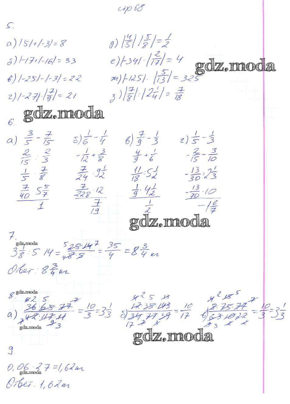 ГДЗ решение к заданию № 68 Математика 6 класс рабочая тетрадь Ерина Т.М. (к уч. Никольского С.М.) Экзамен 2017 Часть 1, Часть 2 ФГОС бесплатно на гдз.мода!