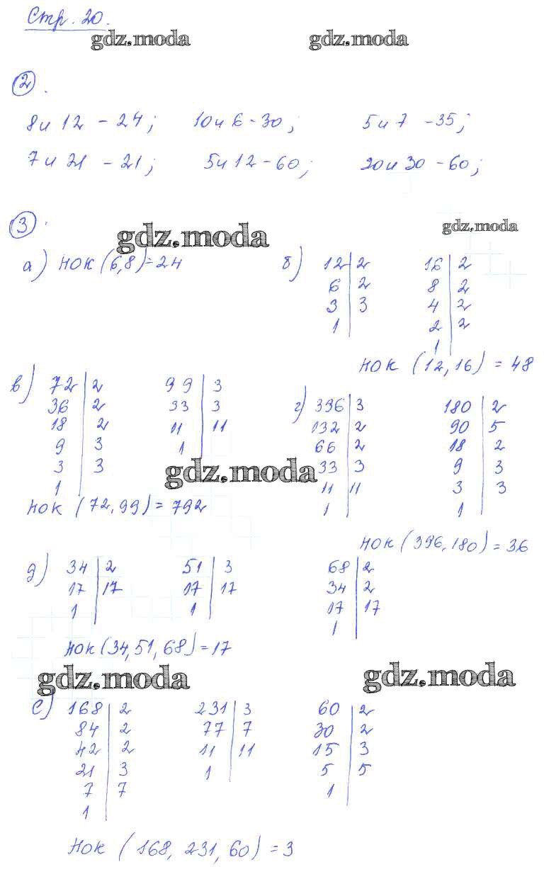 ГДЗ решение к заданию № 20 Математика 6 класс рабочая тетрадь Рудницкая В.Н. Мнемозина 2013 Часть 1, Часть 2 ФГОС бесплатно на гдз.мода!