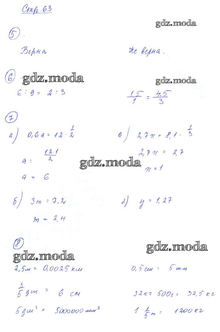 ГДЗ решение к заданию № 63 Математика 6 класс рабочая тетрадь Рудницкая В.Н. Мнемозина 2013 Часть 1, Часть 2 ФГОС бесплатно на гдз.мода!