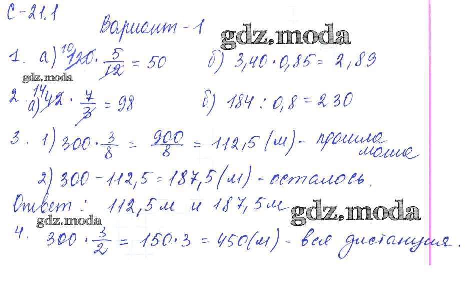 ОТВЕТ на задание № 1 Самостоятельные работы по Математике 6 класс Зубарева УМК