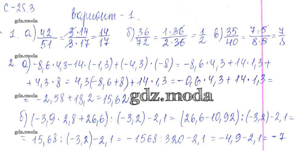 ГДЗ решение к заданию № 1 Математика 6 класс самостоятельные работы Зубарева И.И. Мнемозина 2020 ФГОС бесплатно на гдз.мода!
