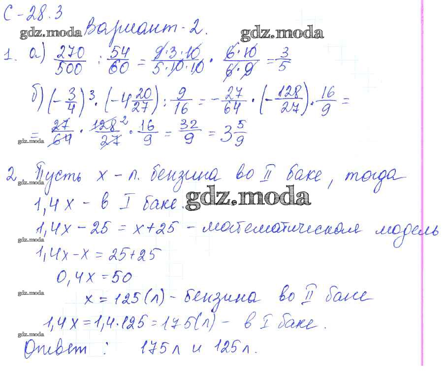 ОТВЕТ на задание № 2 Самостоятельные работы по Математике 6 класс Зубарева УМК