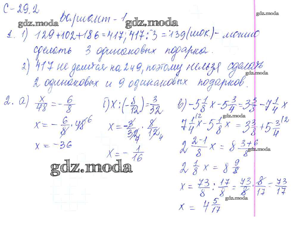 ГДЗ решение к заданию № 1 Математика 6 класс самостоятельные работы Зубарева И.И. Мнемозина 2020 ФГОС бесплатно на гдз.мода!