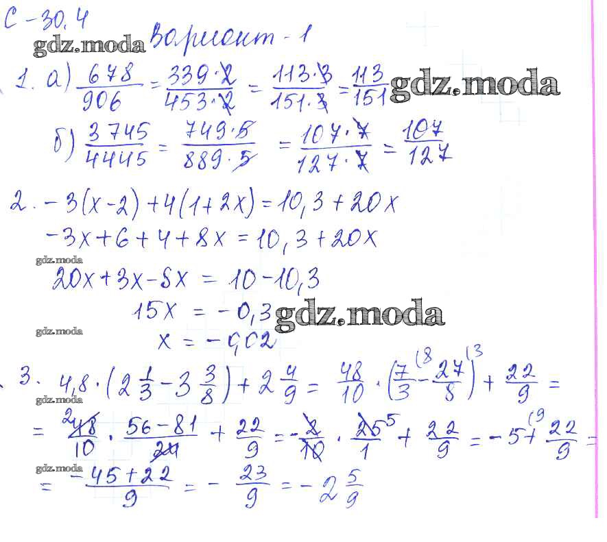 ГДЗ решение к заданию № 1 Математика 6 класс самостоятельные работы Зубарева И.И. Мнемозина 2020 ФГОС бесплатно на гдз.мода!