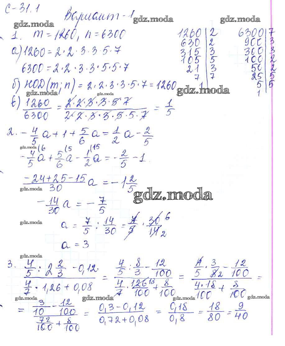 ГДЗ решение к заданию № 1 Математика 6 класс самостоятельные работы Зубарева И.И. Мнемозина 2020 ФГОС бесплатно на гдз.мода!