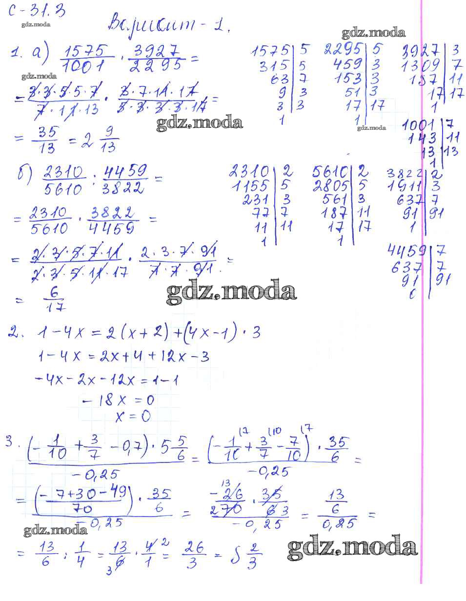 ГДЗ решение к заданию № 1 Математика 6 класс самостоятельные работы Зубарева И.И. Мнемозина 2020 ФГОС бесплатно на гдз.мода!