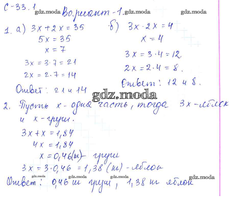 ОТВЕТ на задание № 1 Самостоятельные работы по Математике 6 класс Зубарева УМК