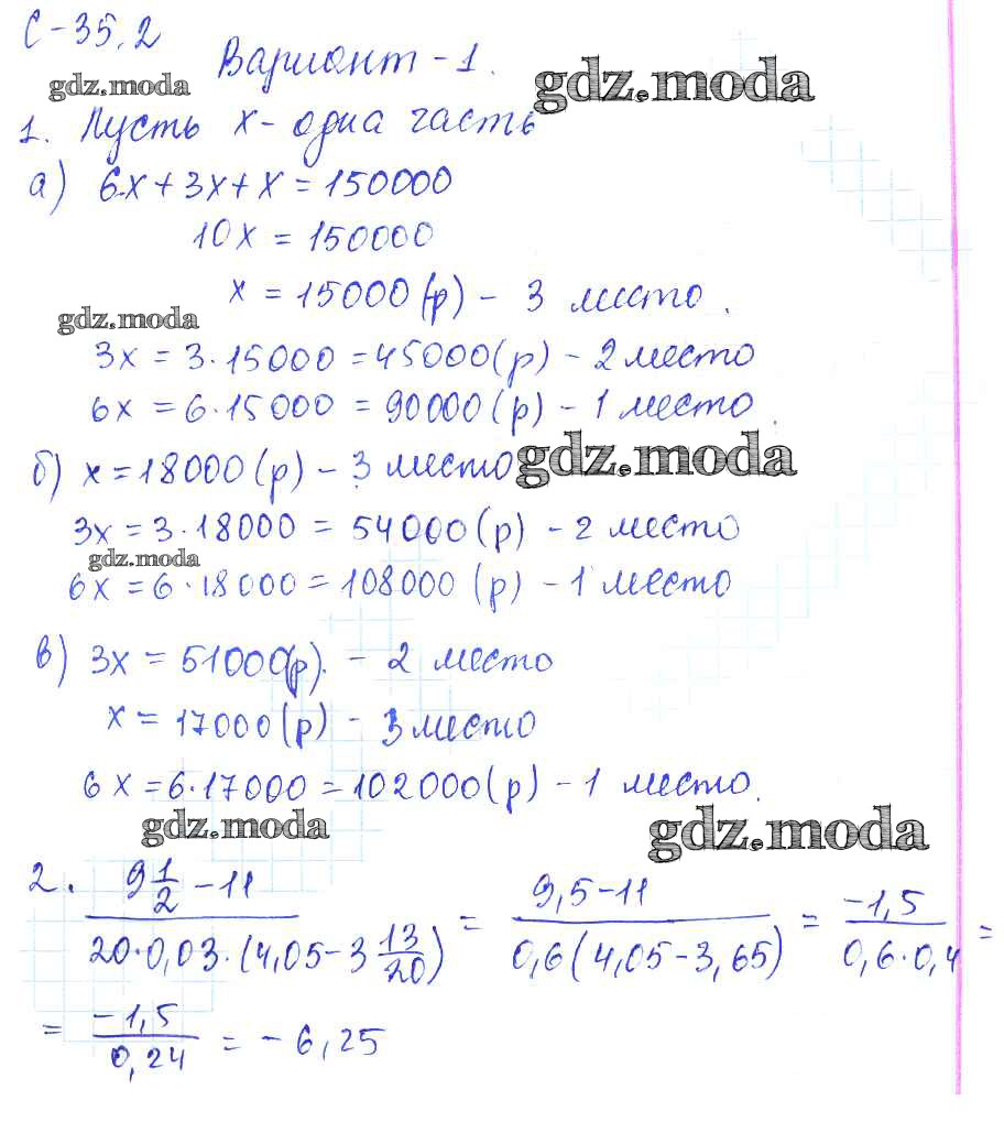 ГДЗ решение к заданию № 1 Математика 6 класс самостоятельные работы Зубарева И.И. Мнемозина 2020 ФГОС бесплатно на гдз.мода!