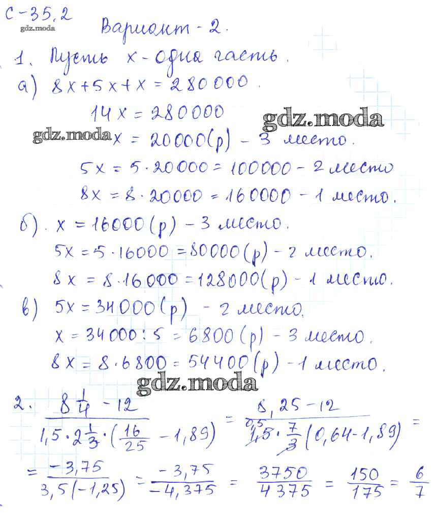 ГДЗ решение к заданию № 2 Математика 6 класс самостоятельные работы Зубарева И.И. Мнемозина 2020 ФГОС бесплатно на гдз.мода!