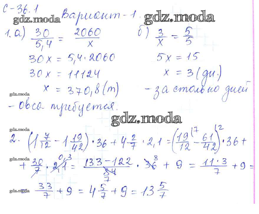 ОТВЕТ на задание № 1 Самостоятельные работы по Математике 6 класс Зубарева УМК