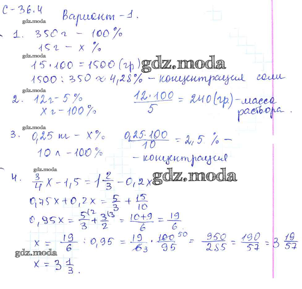 ОТВЕТ на задание № 1 Самостоятельные работы по Математике 6 класс Зубарева УМК
