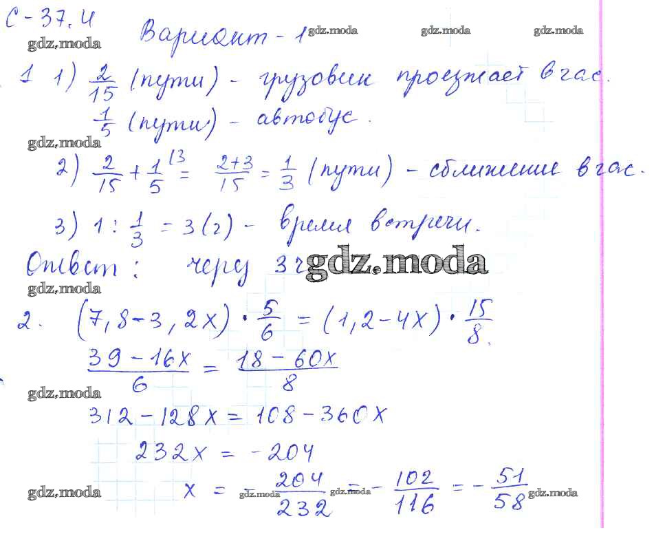 ОТВЕТ на задание № 1 Самостоятельные работы по Математике 6 класс Зубарева УМК
