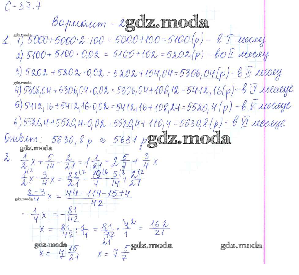 ГДЗ решение к заданию № 2 Математика 6 класс самостоятельные работы Зубарева И.И. Мнемозина 2020 ФГОС бесплатно на гдз.мода!