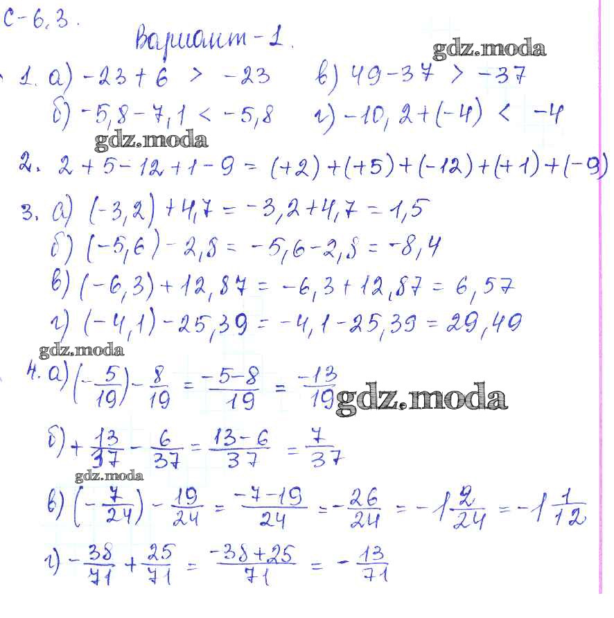 ОТВЕТ на задание № 1 Самостоятельные работы по Математике 6 класс Зубарева УМК