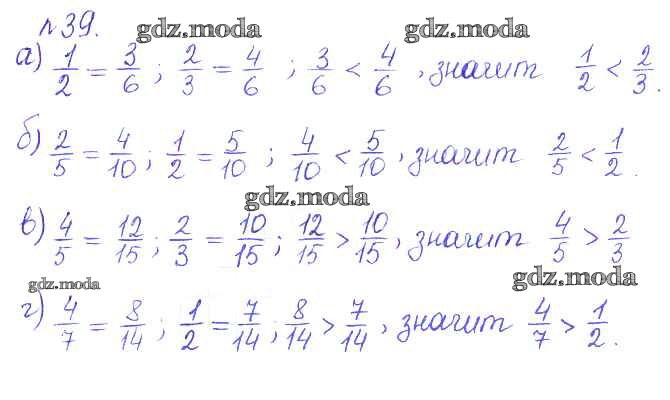 ОТВЕТ на задание № 39 Сборник задач и упражнений по Математике 6 класс Гамбарин