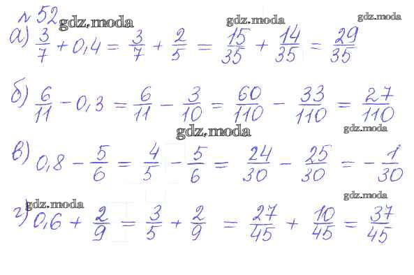 ОТВЕТ на задание № 52 Сборник задач и упражнений по Математике 6 класс Гамбарин